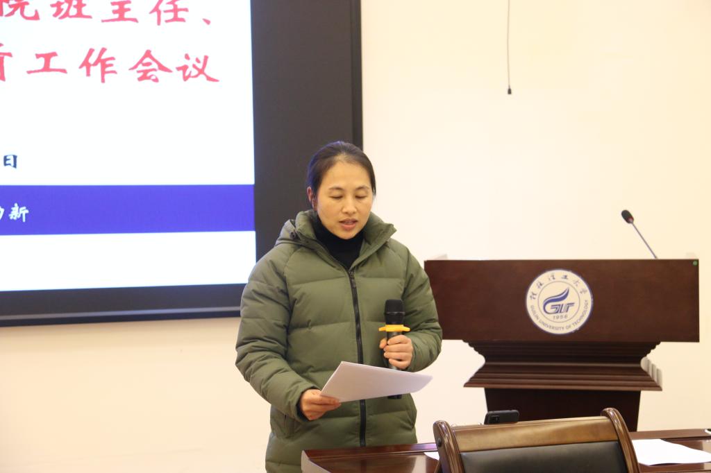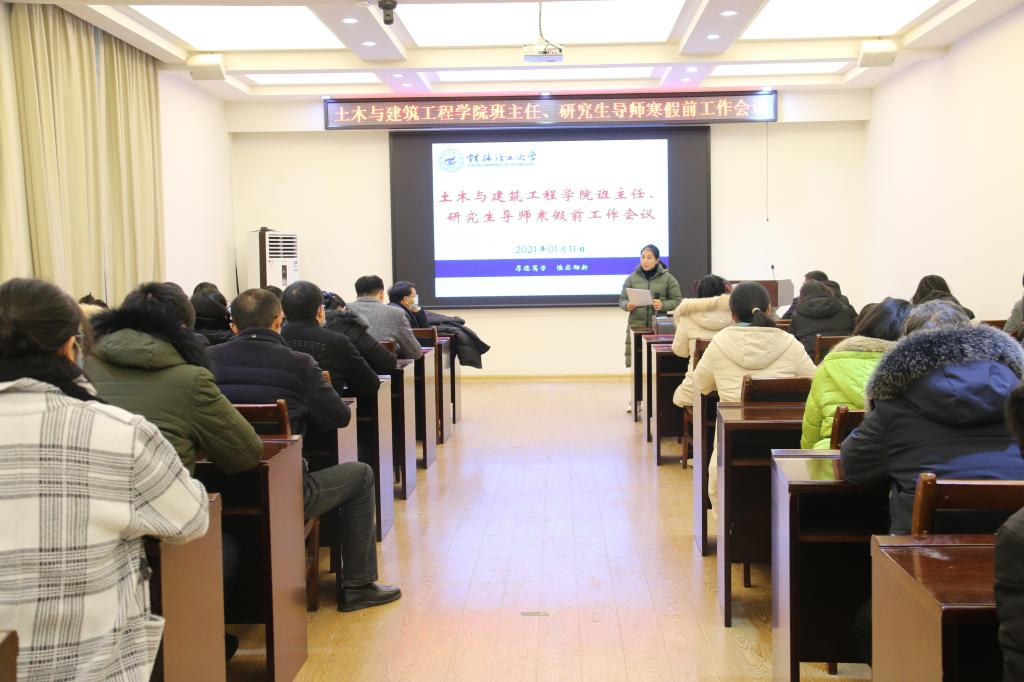 2021年1月11日下午,我院在4204会议室召开班主任、研究生导师寒假前工作会议,会议由学院党委副书记唐丽华老师主持,学工组长夏勇超老师、全体班主任和研究生导师参会。