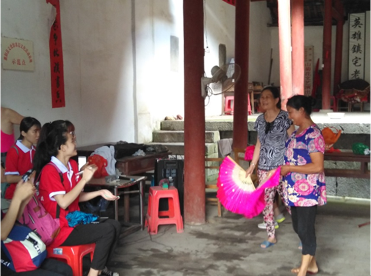 老奶奶们向实践团成员们介绍彩调文化
