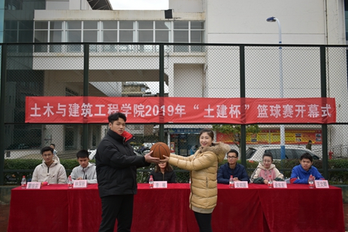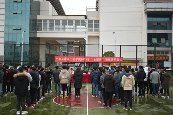 为了丰富广大同学的课余生活、培养同学们坚定的意志和毅力、增强班级凝聚力。3月9日上午,土木与建筑工程学院2019年“土建杯”篮球联赛开幕式在屏风校区篮球场正式举行,学院团委书记姚慧老师、2015级辅导员安邦国老师、2016级辅导员李楠老师、2018级辅导员余东东老师、屏风校区篮球裁判负责人梁虎、商学院和材料学院体育部部长王文卿和林深秋、球员代表蒙琼宗以及各年级篮球运动员均出席了本次开幕式。