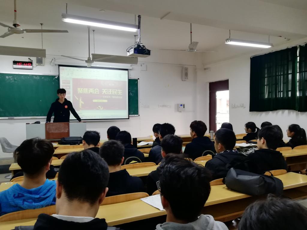 3月11日下午,土木类2018-11团支部在雁山05201教室举办了“聚焦两会,关注民生”的主题团日活动,并取得圆满成功。活动由班级团支书莫普翔主持,得到辅导员罗长钦的大力支持,使同学们学到了很多关于“两会”的相关知识。