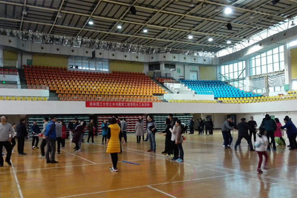 2018年1月6日上午,我院分工会在屏风校区体育馆三楼举行2017秋季学期趣味活动。本次活动共设有6个集体项目,分别是不倒森林、两人三足迎面接力、同心击鼓、让毽子飞、投篮接龙和成语竞猜。为打破教研室之间的界限,促进不同学科和部门教师之间的交流与合作,本次活动由到场的老师报数临时组成6个参赛队,每个参赛队选拔8名以上的队员参加各个项目。