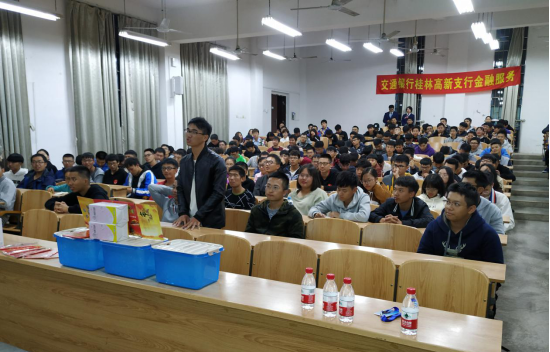 11月13日晚上,在雁山校区06105教室,交通银行桂林分行高新支行徐婕雯老师为我院2018级全体新生开展一场“如何防范新形势下金融诈骗”的主题讲座。讲座由2018级辅导员罗长钦老师主持。