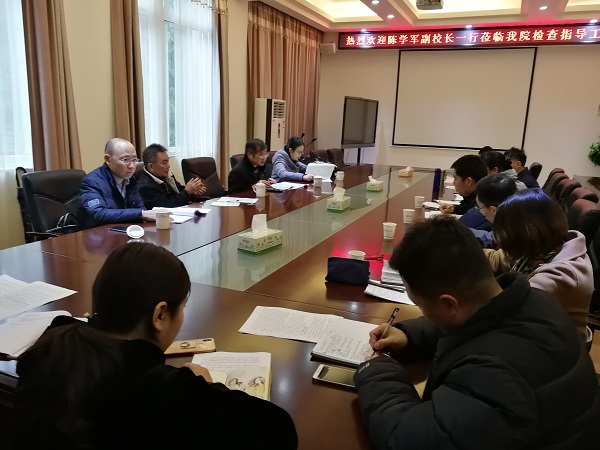 3月1日上午,学校副校长陈学军一行来我院检查指导新学期开学工作。检查组在深入课堂听课之后,学院领导在屏风教四楼4222会议室向检查组进行了工作汇报。