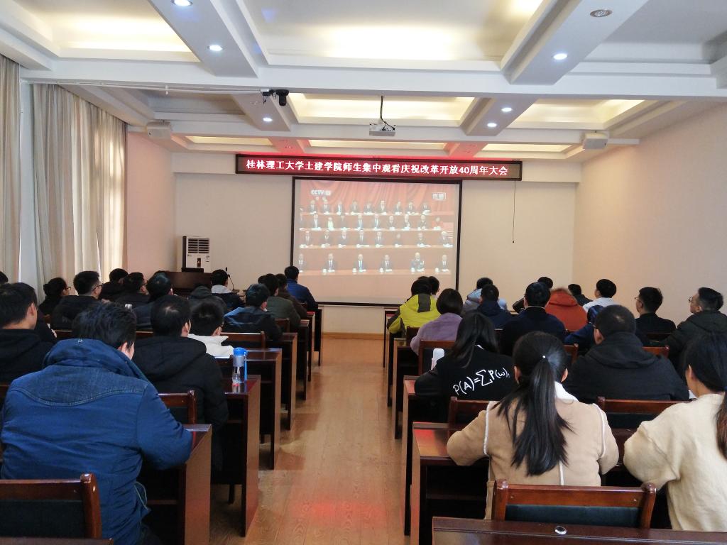 2018年12月18日,庆祝改革开放40周年大会在北京隆重举行。我院组织广大师生在4204会议室通过网络电视实时收听收看庆祝大会直播盛况,认真学习领会习近平总书记的重要讲话精神。学院党委委员、教师代表和全体师生党支部委员参加了本次活动。